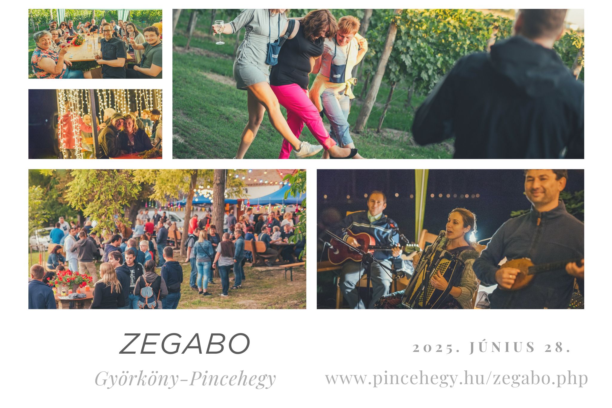 ZeGaBo: Zenés Gasztó Bortúra. 2012 óta megrendezésre kerülő éjszakai bortúra a györkönyi Pincefaluban, melynek során a borokon kívül lehetőség van akusztikus zenekarokat és finom ételeket is ízlelni gyönyörű, hangulatos környezetben. Majd éjfél után after partyra kerül sor a pincefalu főterén.